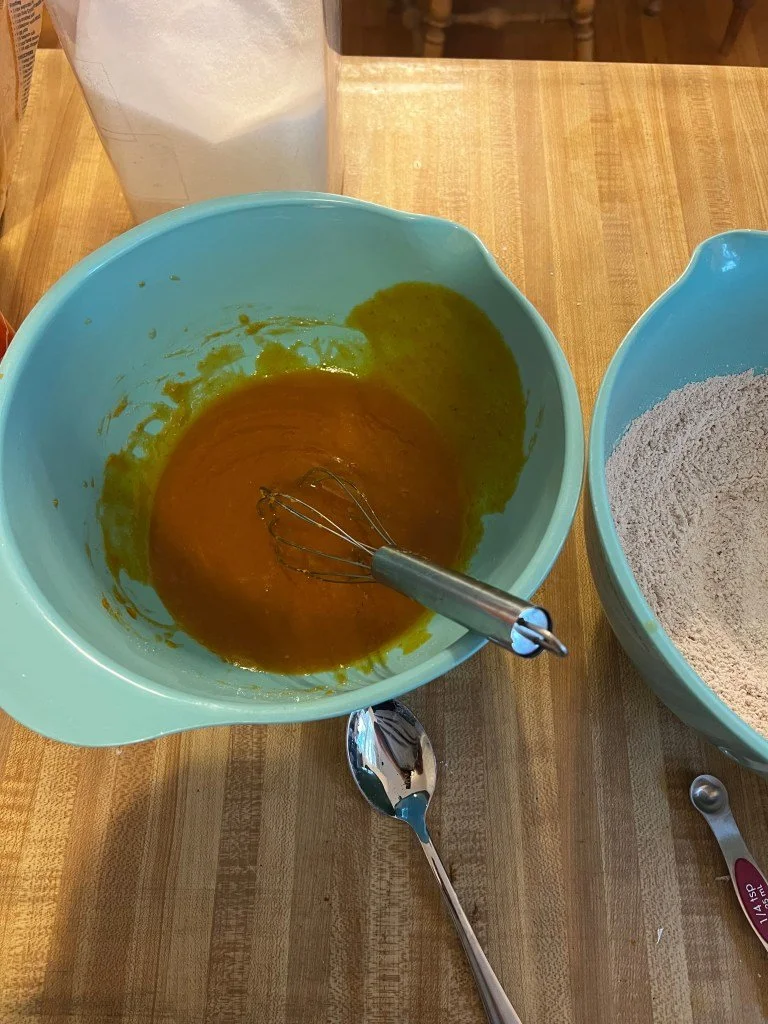 Whisk in the vanilla extract and blotted pumpkin until smooth